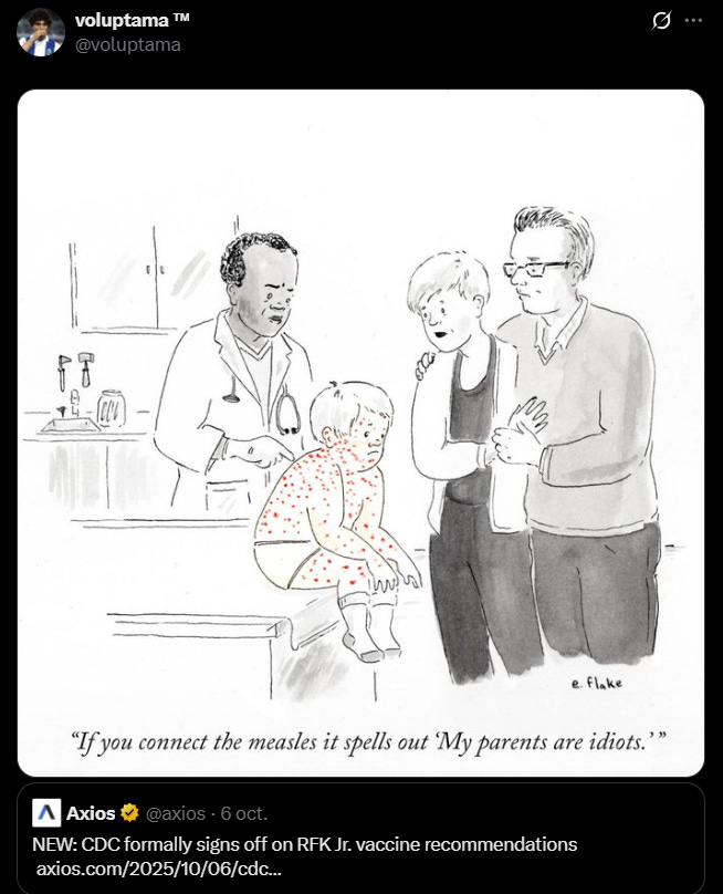 Los CDC adoptaron nuevas guías que eliminan la recomendación universal de vacunación contra COVID para mayores de 65 años. Ahora se sugiere decidir caso por caso con un médico. La agencia también modificó pautas pediátricas y defendió el “consentimiento informado”, en contraste con políticas previas más generalizadas. Lástima que la inmunidad colectiva no lea comunicados de prensa.