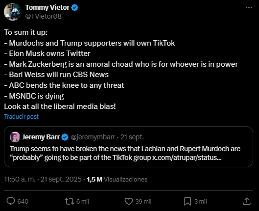 Rupert Murdoch, su hijo Lachlan, Michael Dell y Larry Ellison: según Trump, ellos son los patriotas ideales para “salvar” TikTok. El acuerdo con China aún no está cerrado, pero Trump jura que estos multimillonarios harán un gran trabajo. Eso sí, hace apenas semanas demandó a Murdoch. Business es business, incluso si demandaste a un medio de tu “patriota” hace unos meses.