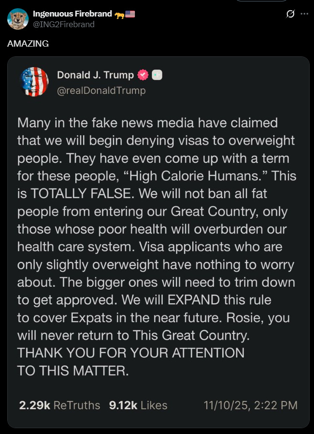 Trump negó que EEUU prohíba la entrada a “todos los gordos”: solo a los que pesen más que su paciencia. En su mensaje en Truth Social, ofreció tranquilidad: los “ligeramente pasados” pueden dormir tranquilos. Los demás, a dieta si quieren cumplir el sueño americano.