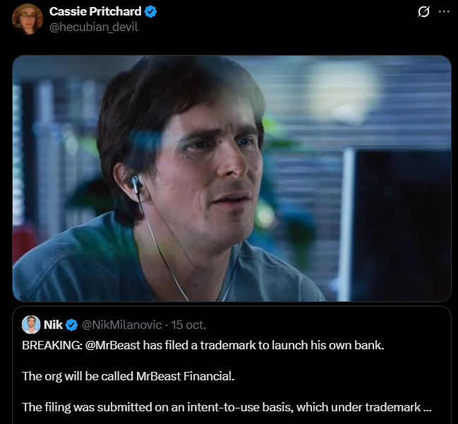 El youtuber MrBeast planea lanzar “MrBeast Financial”, una plataforma de servicios bancarios y asesoría financiera. La posible expansión ilustra el nuevo poder económico de los creadores digitales. Convertir su audiencia en base de clientes podría redefinir la relación entre contenido e inversión. Pero también plantea dilemas éticos: ¿puede un influencer monetizar la confianza de su público sin convertirse en una entidad corporativa más?