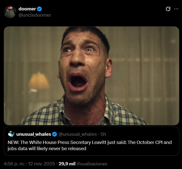 Como la Casa Blanca dijo que el sistema estadístico quedó “permanentemente dañado” y quizás no publiquen el informe de empleo y los datos de inflación previstos para octubre, creo que es seguro decirlo: EEUU se quedó sin Excel. Se busca, se busca: alguien que les diga que si los reportes se retrasan o pierden calidad, el efecto se sentirá en la volatilidad de los mercados y en la política económica.