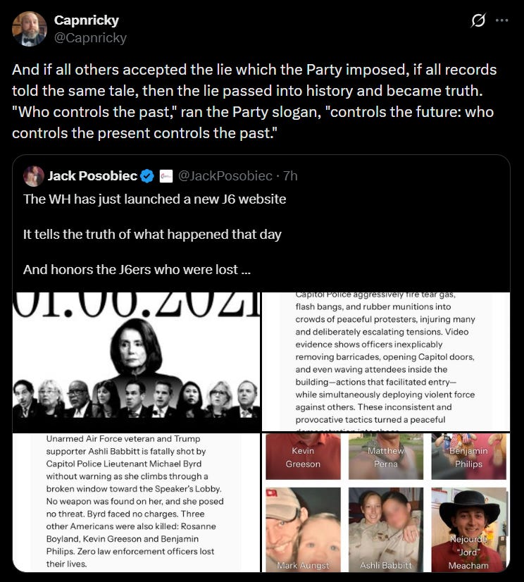 Cinco años después, el poder no recuerda: reescribe. La Casa Blanca publicó una página oficial que presenta el ataque del 6 de enero como una protesta pacífica y acusa a Mike Pence de “cobardía y sabotaje”. El sitio omite a oficiales fallecidos, contradice investigaciones cerradas y responsabiliza a la Policía del Capitolio de escalar la violencia. En pocas palabras, un motín, pero contado como picnic.