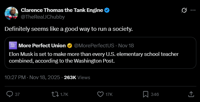 Elon Musk podría ganar $100,000 millones al año, unos $3,000 millones más que todos los maestros de primaria juntos. No hay más “prioridades” que recompensar al tipo más rico del mundo por seguir siéndolo. Pero bueno, ese es el significado de la palabra magnate.