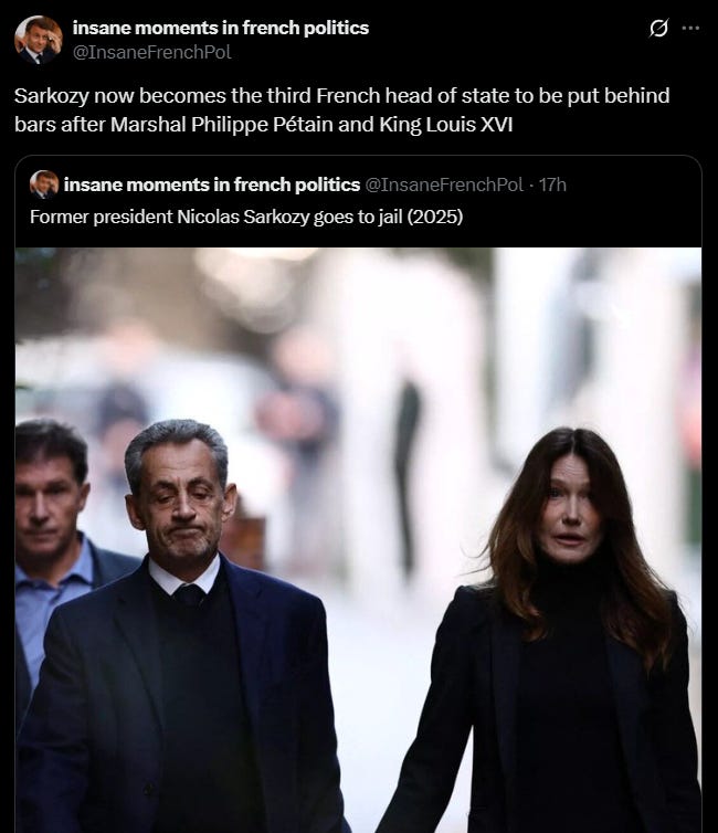 Por primera vez en la historia reciente, un expresidente francés pisa la cárcel. Reciente. Nicolas Sarkozy ingresó en La Santé para cumplir cinco años de condena por conspirar con dinero de Muamar Gadafi. Asegura ser inocente y promete mantener la cabeza en alto. En términos históricos, es una advertencia: en la V República, ningún pasado —por más presidencial que sea— está fuera del alcance de la justicia.