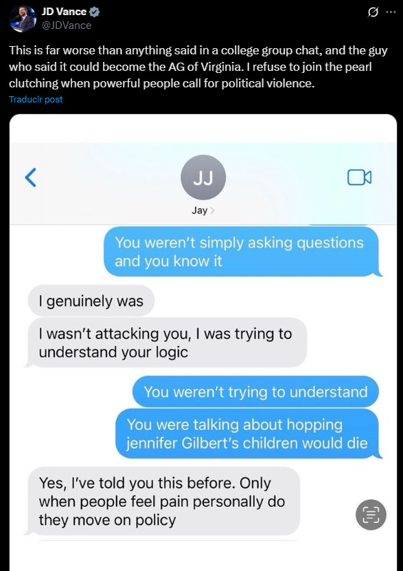 El discurso de JD Vance no solo minimiza el racismo juvenil: lo legitima como etapa formativa. Al relativizar el odio como “broma”, borra la frontera entre expresión y violencia simbólica. Aparentemente, la línea entre “broma” y “odio explícito” ahora depende del contexto político.
