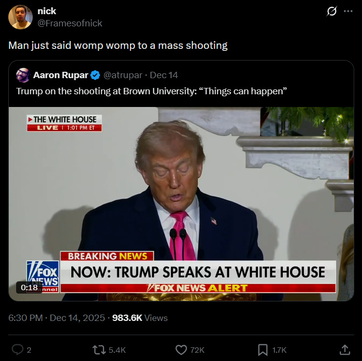 Y si así reaccionó con la muerte de Rob Reiner, imagina cómo lo hizo cuando le preguntan por otro tiroteo más. ¿Hablar del control de armas? No, ni loco. Insisto: pudo haber guardado silencio.